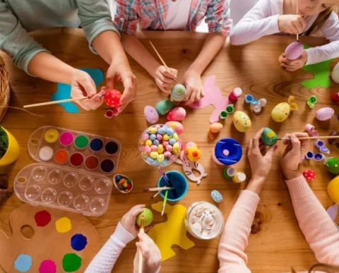 Creación de huevos de pascua con pintura.